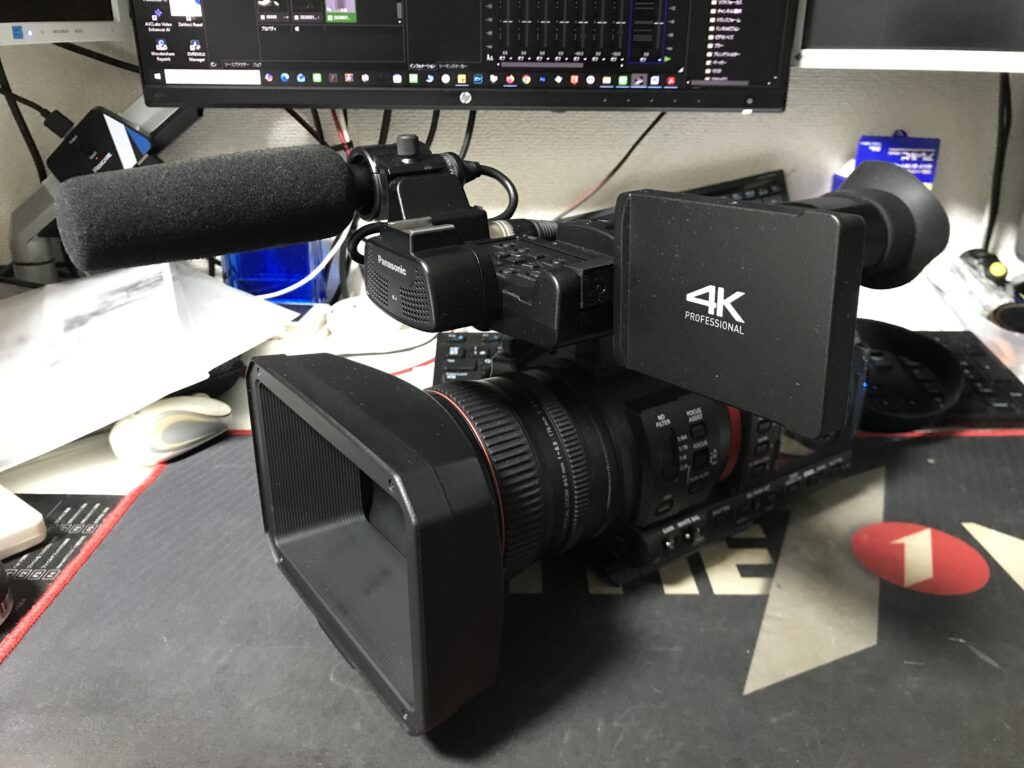 普段はNEWSなどで「panasonic AG-CX350」というカメラを使っております。このカメラの良い所はバッテリーの持ちが良い所、ワイコンいらずの広角で撮れる所、解像度も高く奇麗な映像を撮れる所、操作もピント、ズーム、アイリスの3連リングが特徴になります。